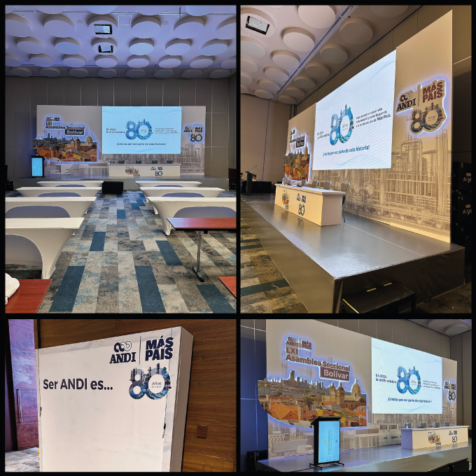 El servicio de diseño, producción y montaje de escenografía para ANDI consistió en la creación de un entorno impactante y de alto nivel, alineado con la imagen y el prestigio de la organización en el sector de los eventos. Se desarrolló una escenografía innovadora y funcional que contribuyó a una experiencia visual de gran calidad, destacando la presencia de ANDI y reforzando su liderazgo en el sector.