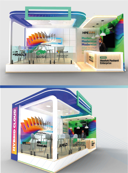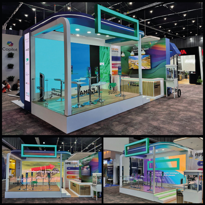 El servicio de diseño, producción y montaje del stand para HPE en el evento Andinalink 2024...